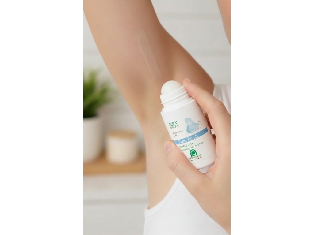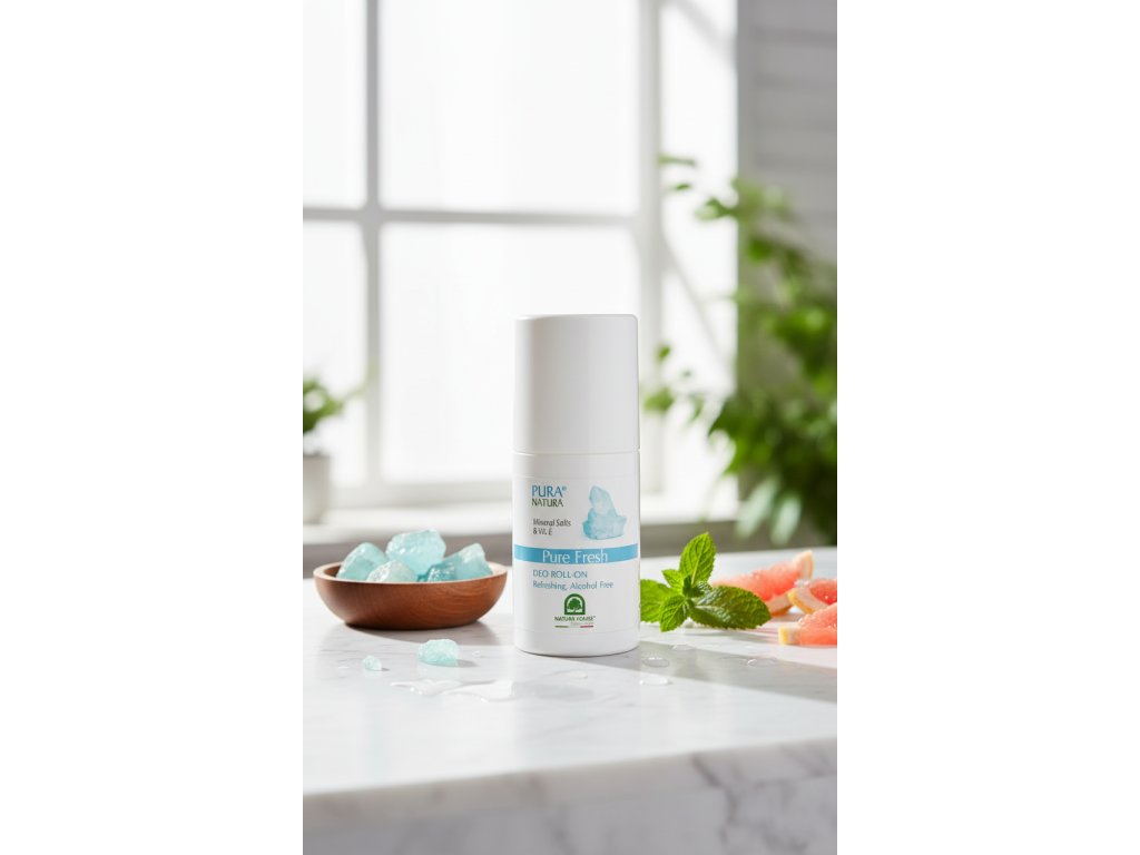 PURE FRESH Deodorant ROLL-ON jemný a svieži prírodný deodorant, bez obsahu hliníkových (alumíniových) solí, s minerálnymi soľami a vitamínom E. Jemná, neutrálna unisex vôňa dodáva pocit čistoty a sviežosti po celý deň, poteší aj tie najcitlivejšie nosy a neprebije váš obľúbený parfém. Antibakteriálna sila aktívneho komplexu proti zápachu účinne ničí baktérie, ktoré potom nemajú šancu tvoriť nepríjemný odér. Deodorant kombinuje účinnosť proti zápachu s hydratačnými, upokojujúcimi a ochrannými vlastnosťami. Vďaka aktívnym zložkám prírodného pôvodu aj tá najcitlivejšia pokožke v podpazuší je v bezpečí. Šikovný roll-on aplikátor umožňuje jednoduché nanášanie deodorantu a nezanecháva biele stopy na oblečení.