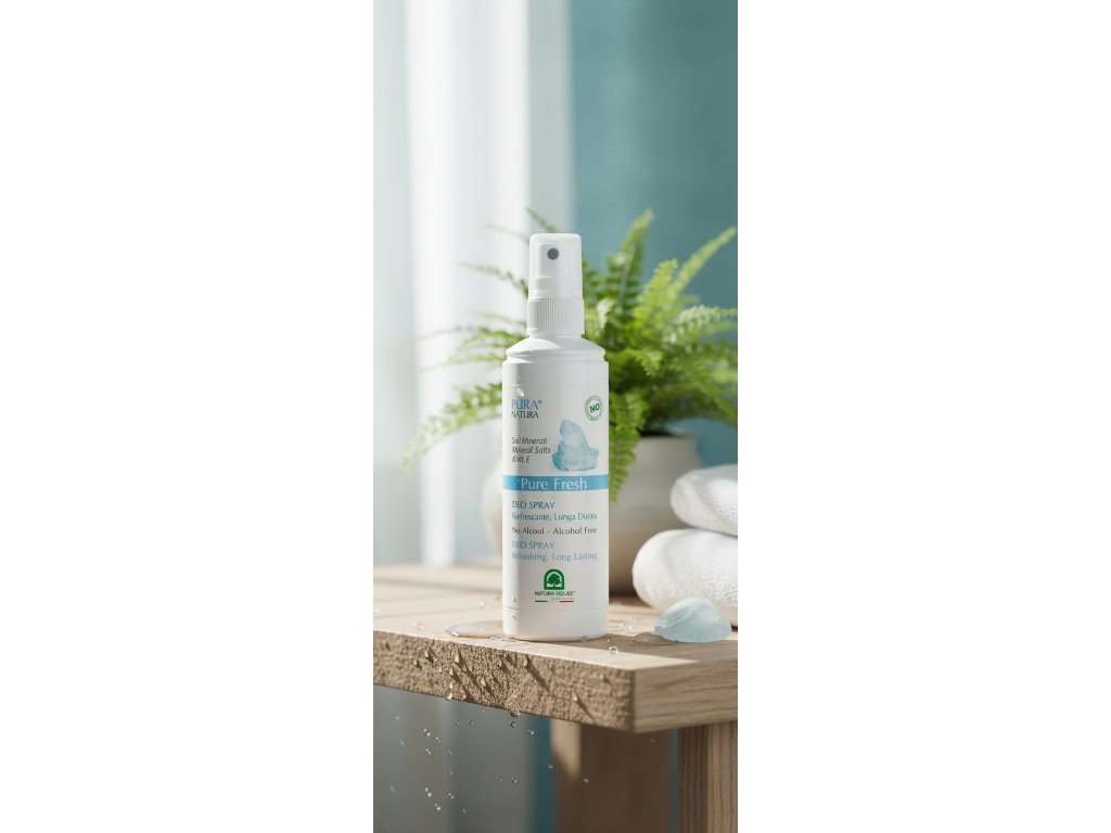 PURE FRESH Deodorant SPREJ jemný a svieži prírodný deodorant, bez obsahu hliníkových (alumíniových) solí, s minerálnymi soľami a vitamínom E. Jemná, neutrálna unisex vôňa dodáva pocit čistoty a sviežosti po celý deň, poteší aj tie najcitlivejšie nosy a neprebije váš obľúbený parfém. Antibakteriálna sila aktívneho komplexu proti zápachu účinne ničí baktérie, ktoré potom nemajú šancu tvoriť nepríjemný odér. Deodorant kombinuje účinnosť proti zápachu s hydratačnými, upokojujúcimi a ochrannými vlastnosťami. Vďaka aktívnym zložkám prírodného pôvodu aj tá najcitlivejšia pokožke v podpazuší je v bezpečí. Sprej deodorantu je vďaka inovatívnej technológii poháňaný iba tlakom vzduchu a nie chemickými zložkami, ide tak o plne bezpečnú voľbu nespôsobujúcu podráždenie pokožky.