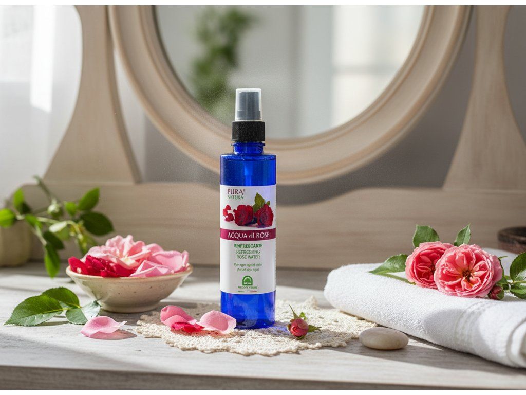 Prírodná RUŽOVÁ VODA je najobľúbenejšia kvetová voda. Získava sa destiláciou kvetov bulharskej ruže „ROSE DAMASCENA“a obsahuje vysoký podiel éterického ružového oleja. Vďaka ružovej vode bude vaša pleť upokojená, hydratovaná a bez stopy po make-upe.