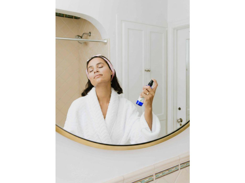 POUŽITIE: Nastriekajte na tvár, telo pre okamžité osvieženie a hydratáciu kedykoľvek počas dňa ( zatvorte oči).