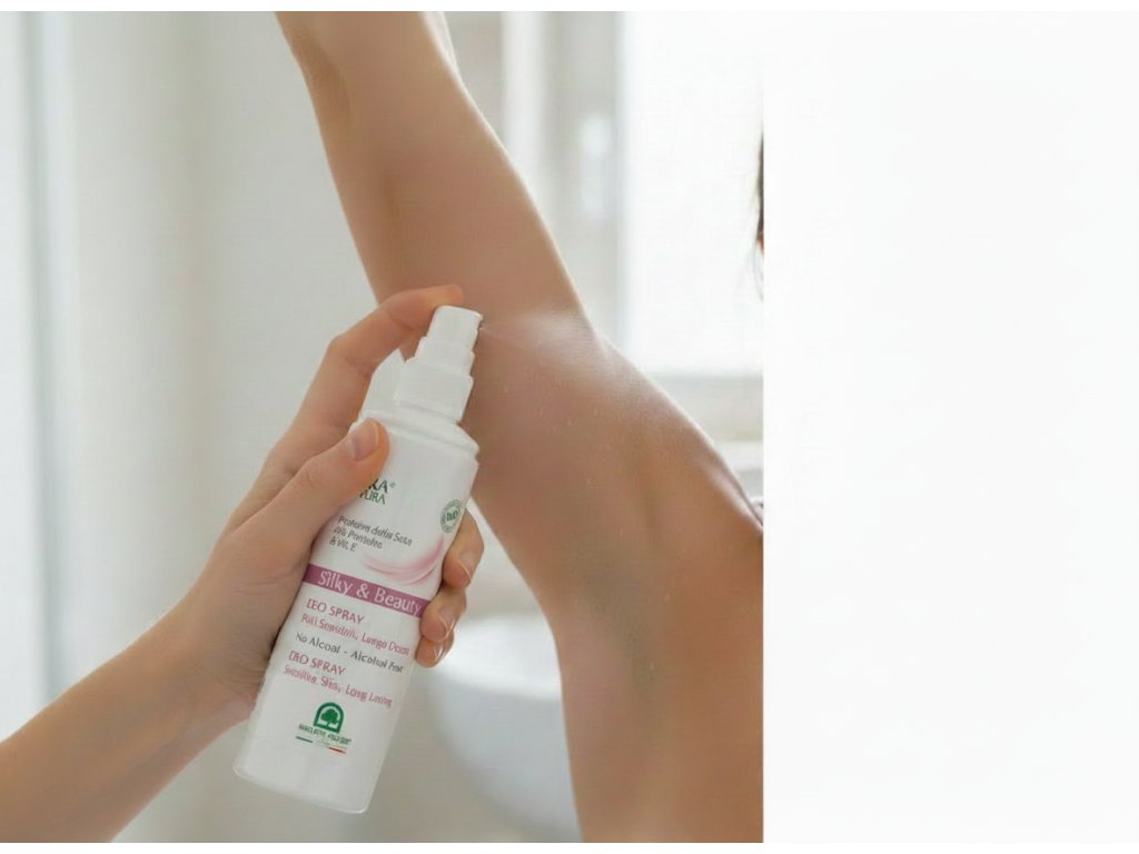 SILKY & BEAUTY Deodorant SPREJ jemný prírodný deodorant, bez obsahu hliníkových (alumíniových) solí, s hodvábnymi proteínmi a vitamínom E.